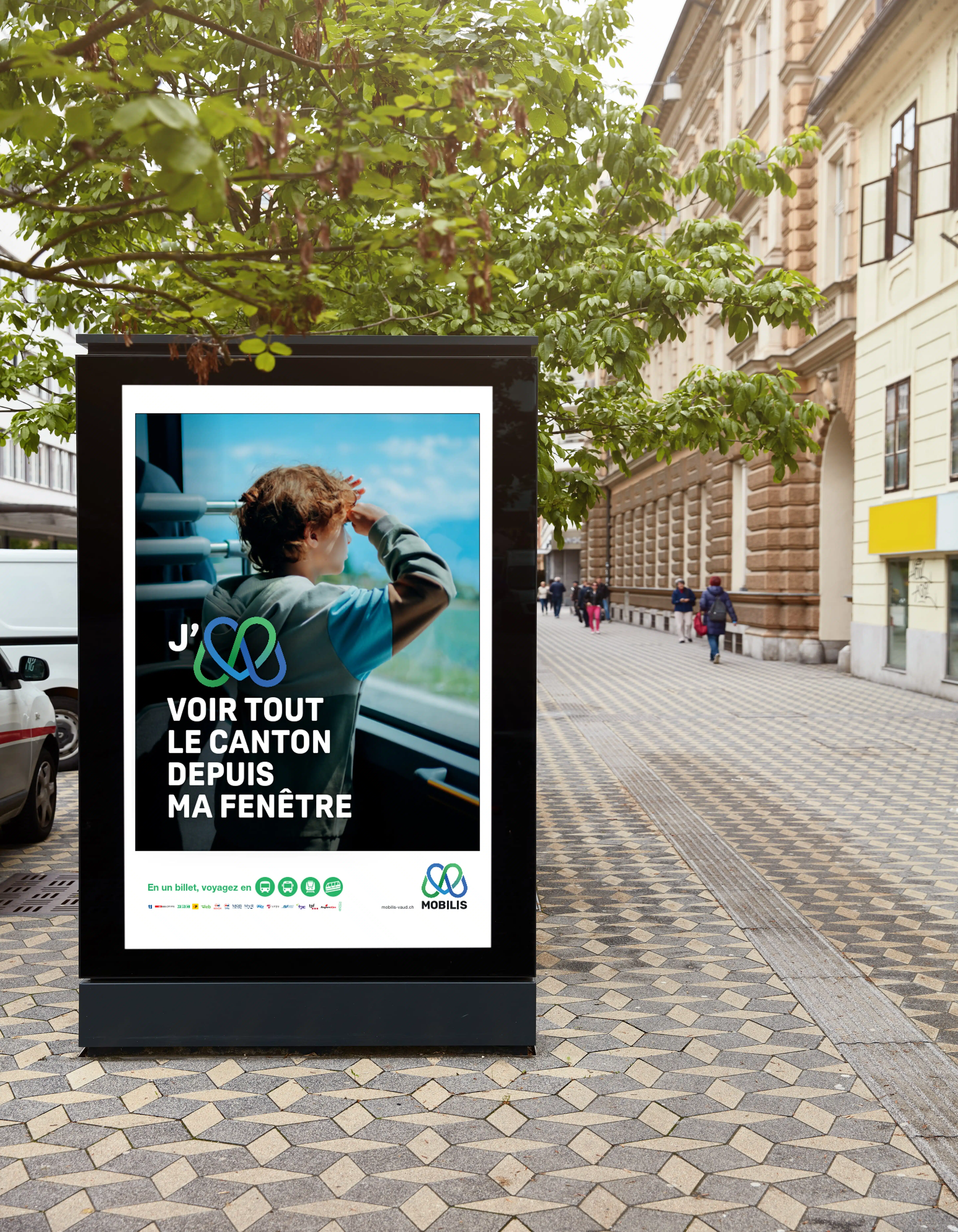 La campagne s’articule autour d’une série de scènes de la vie quotidienne dans les transports publics reflétant l’avantage de Mobilis. Ainsi, elle ne parle pas seulement de transport : elle raconte des histoires traduites par la contraction “J’M”: “J’M voyager l’esprit libre”, “J’M voir tout le canton depuis ma fenêtre”, “J’M qu’on ait plus d’un transport en commun”… Une invitation à redécouvrir la mobilité avec plaisir, et avec amour.